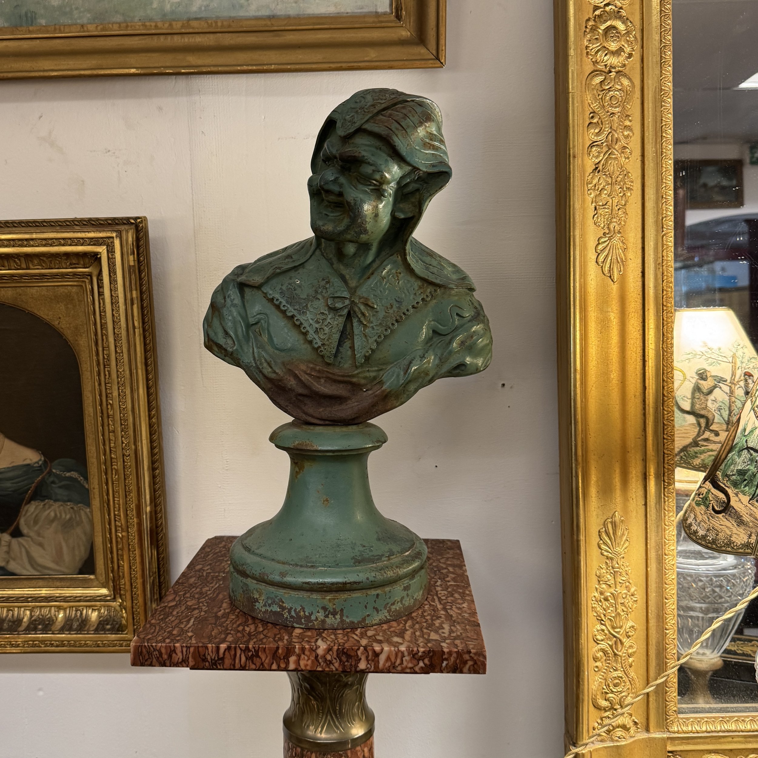 Buste d’un fou en fonte.