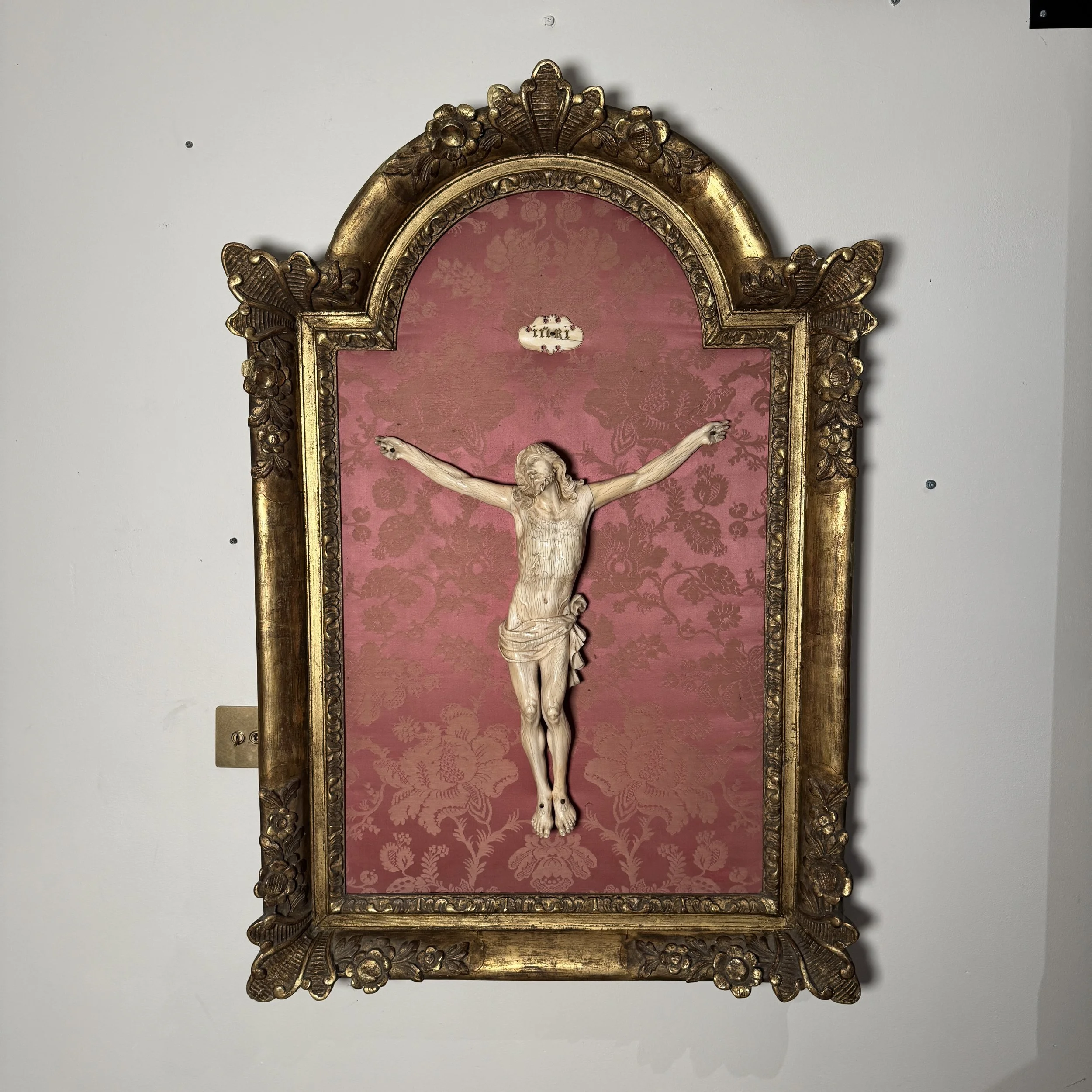 Christ en Ivoire, Cadre en bois doré de style Régence.